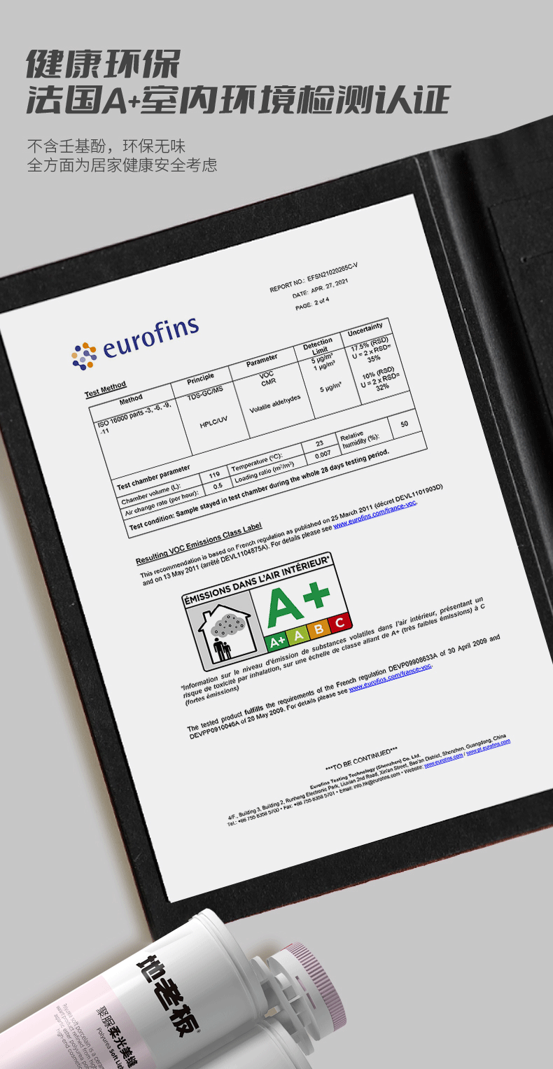 產品承諾:通過法國室內環境檢測A+認證 歐盟SGS、CE環保產品認證